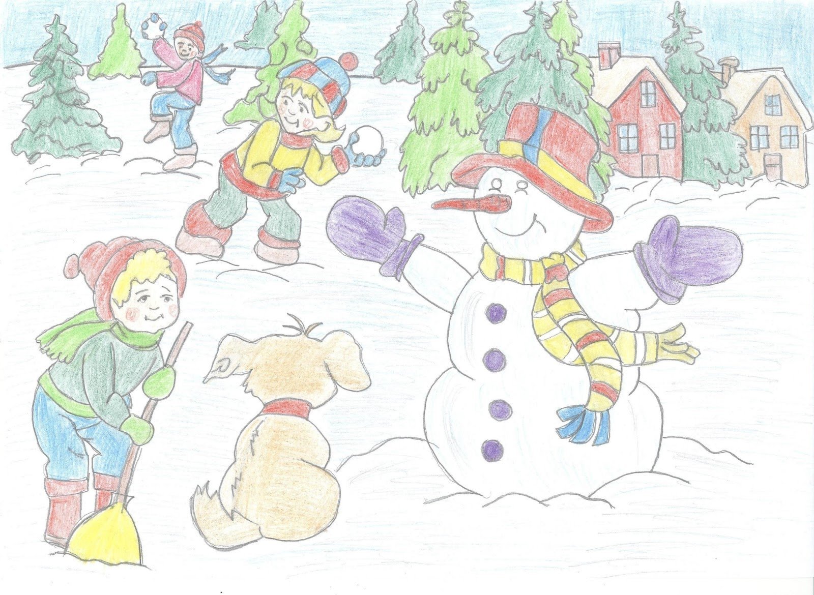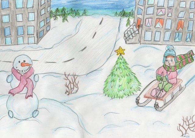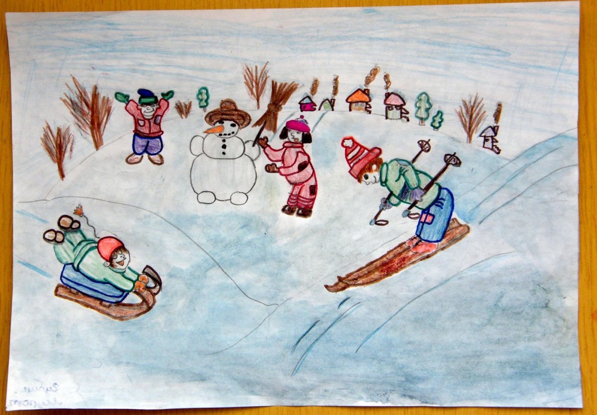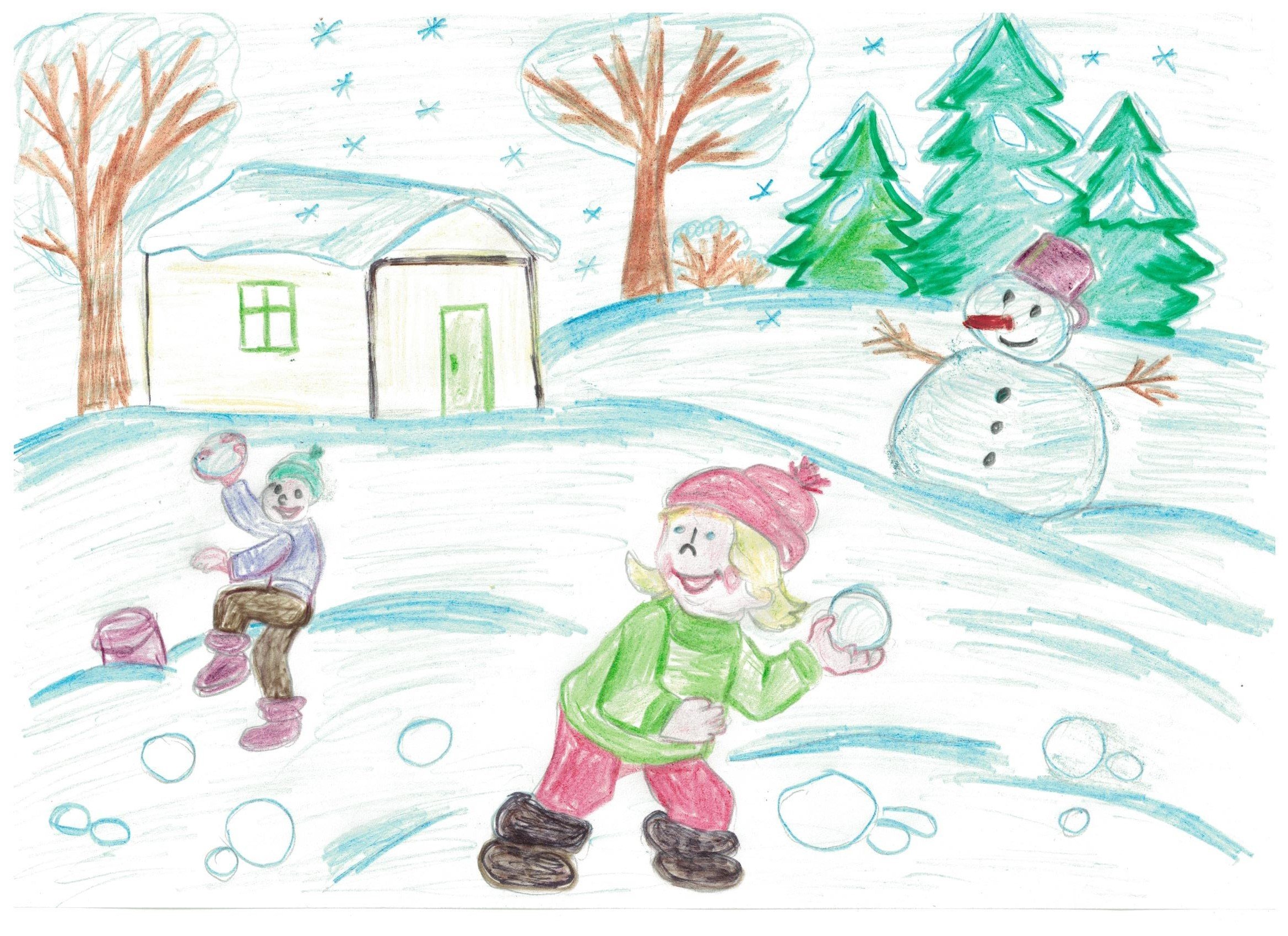 ![Детские рисунки на тему зимние забавы цветными карандашами]()