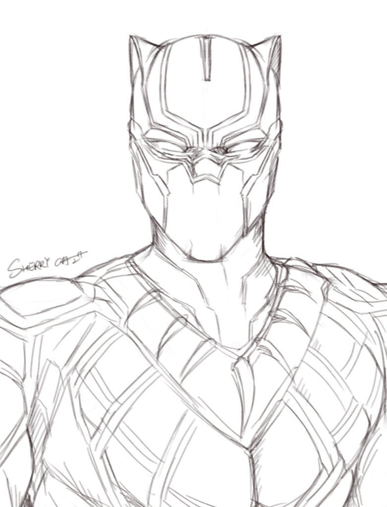 ![Черная пантера Марвел карандашом]()