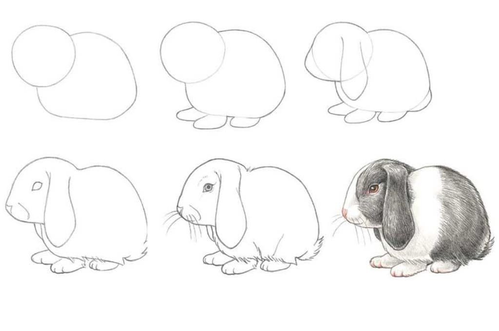 ![Поэтапное рисование кролика]()