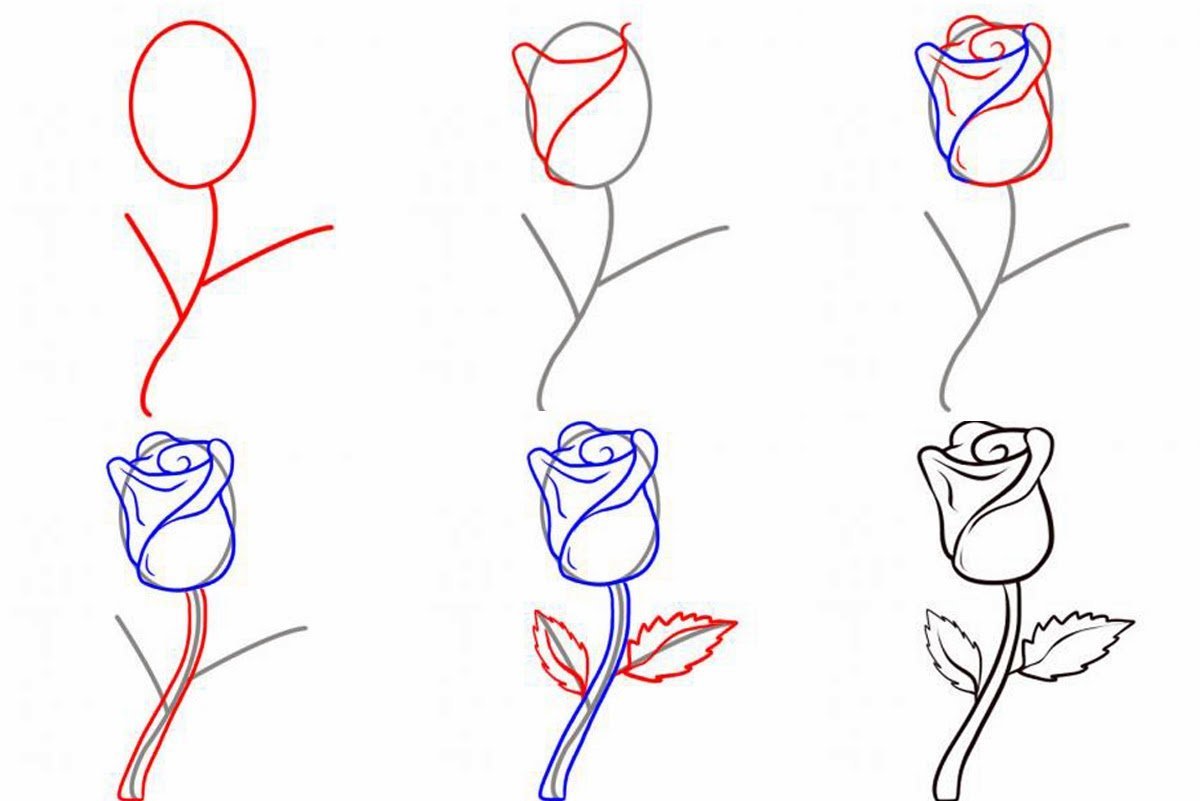 Схема рисования розы карандашом