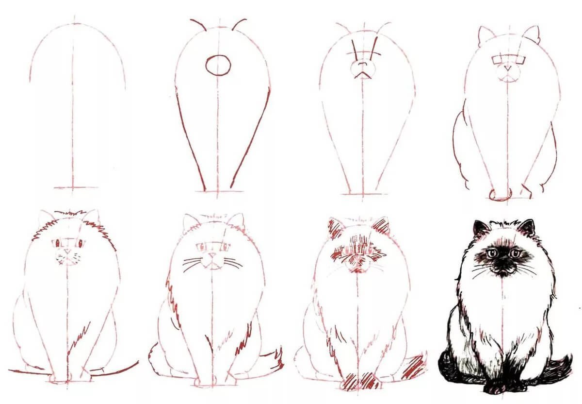 ![Как нарисовать кота поэтапно]()