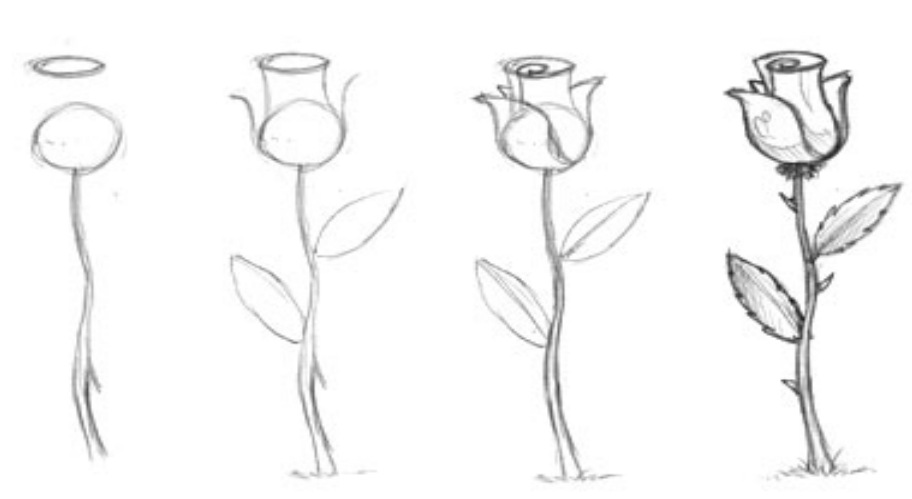 ![Роза рисунок карандашом поэтапно]()