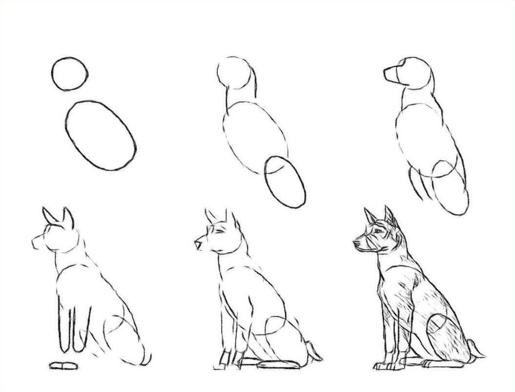 ![Поэтапное рисование собаки]()