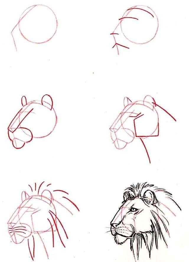 ![Лев рисунок карандашом поэтапно]()