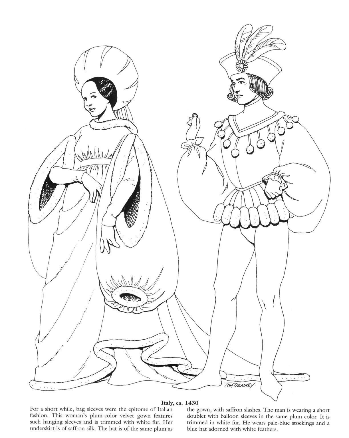Одежда средневековья раскраска