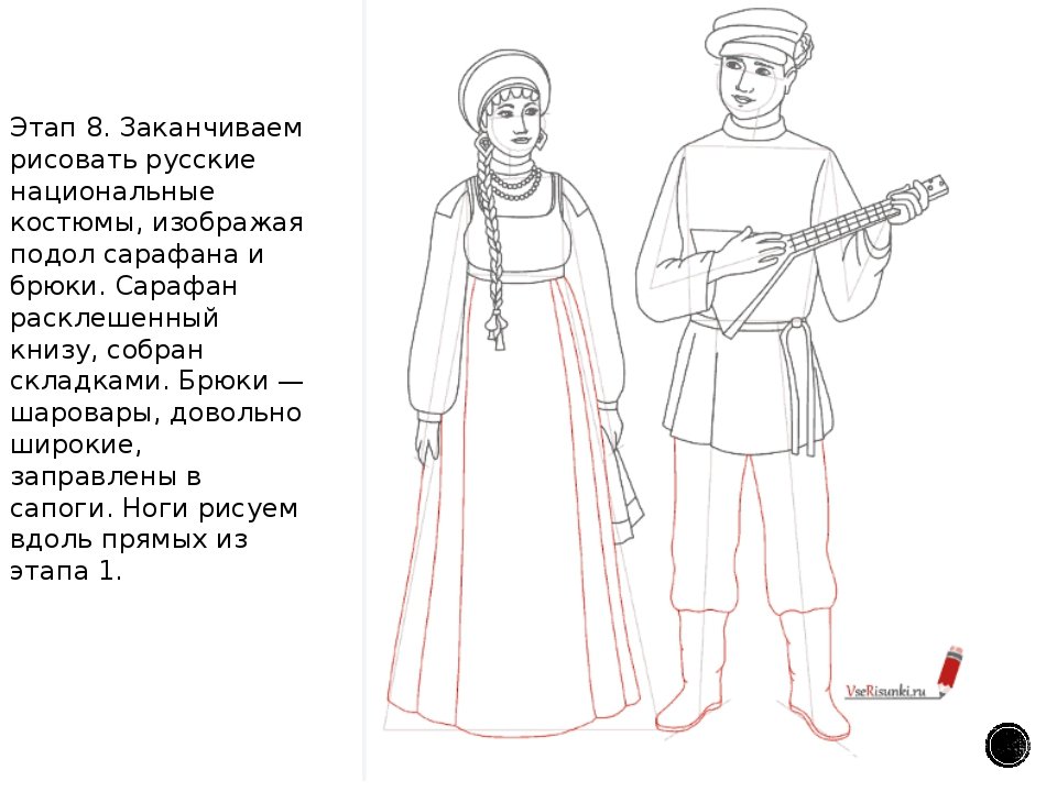 Поэтапное рисование русского костюма