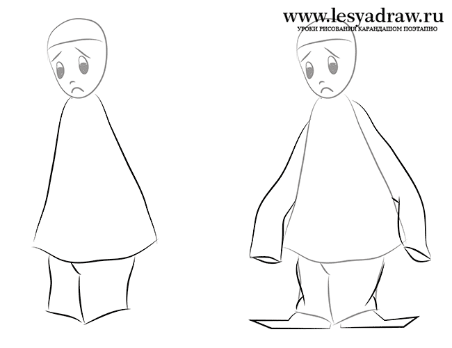 ![Поэтапное рисование русского костюма]()