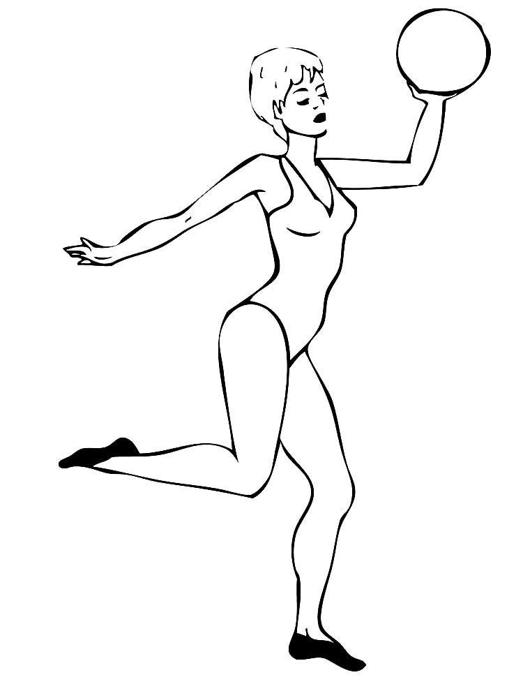 ![Раскраска гимнастка с мячом]()