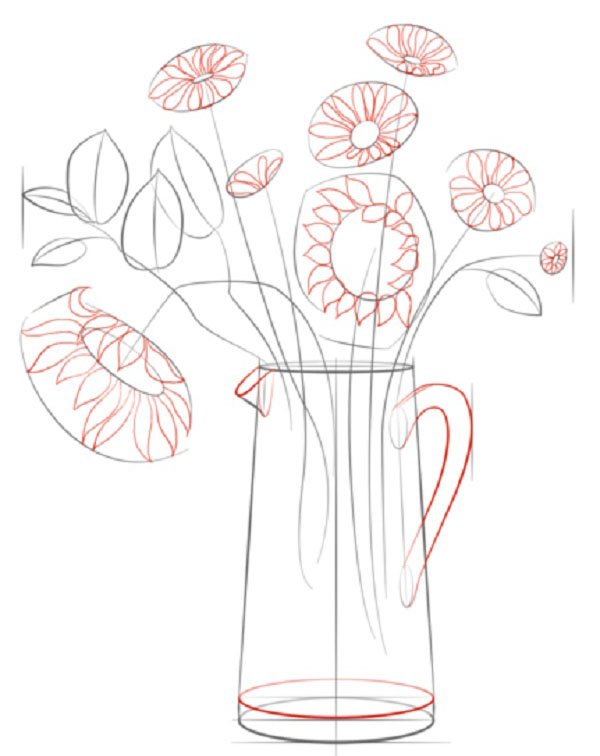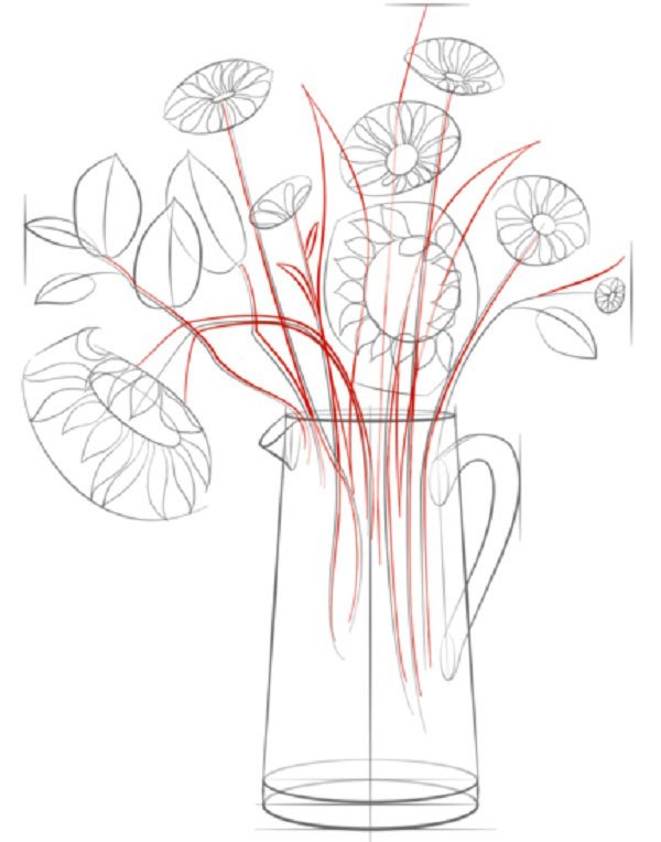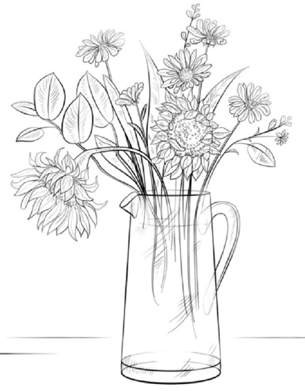 Ваза с цветами для срисовки