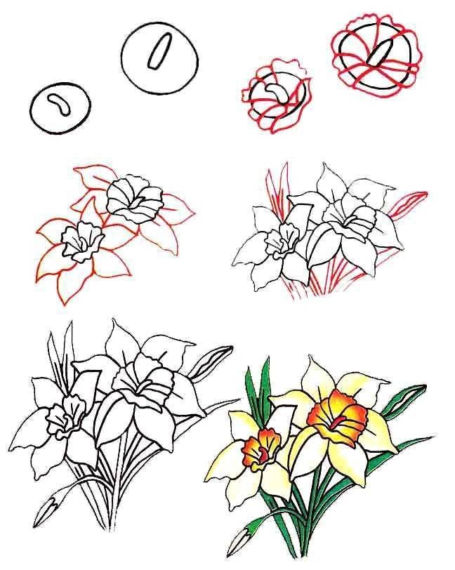 Поэтапное рисование цветов