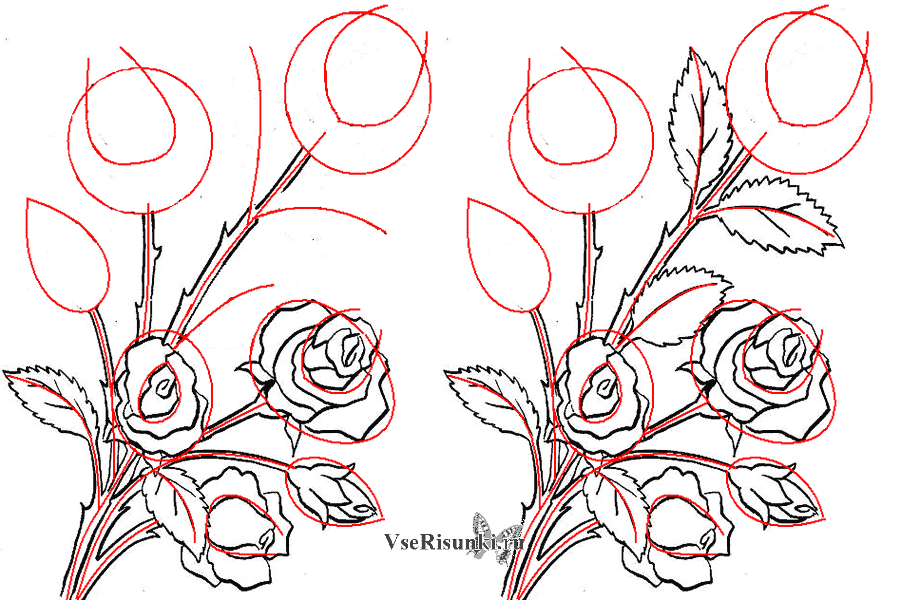 Схема рисования розы карандашом