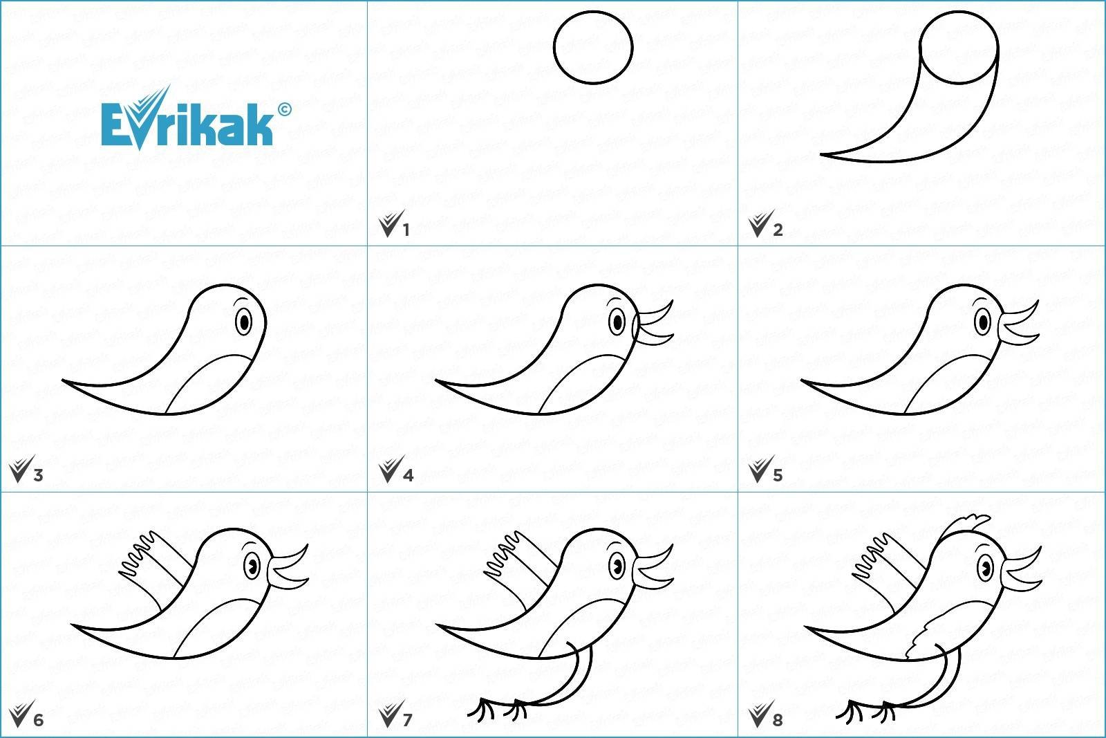 ![Рисование птицы пошагово]()