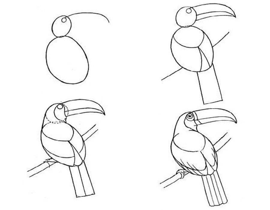 ![Пошаговое рисование птицы]()
