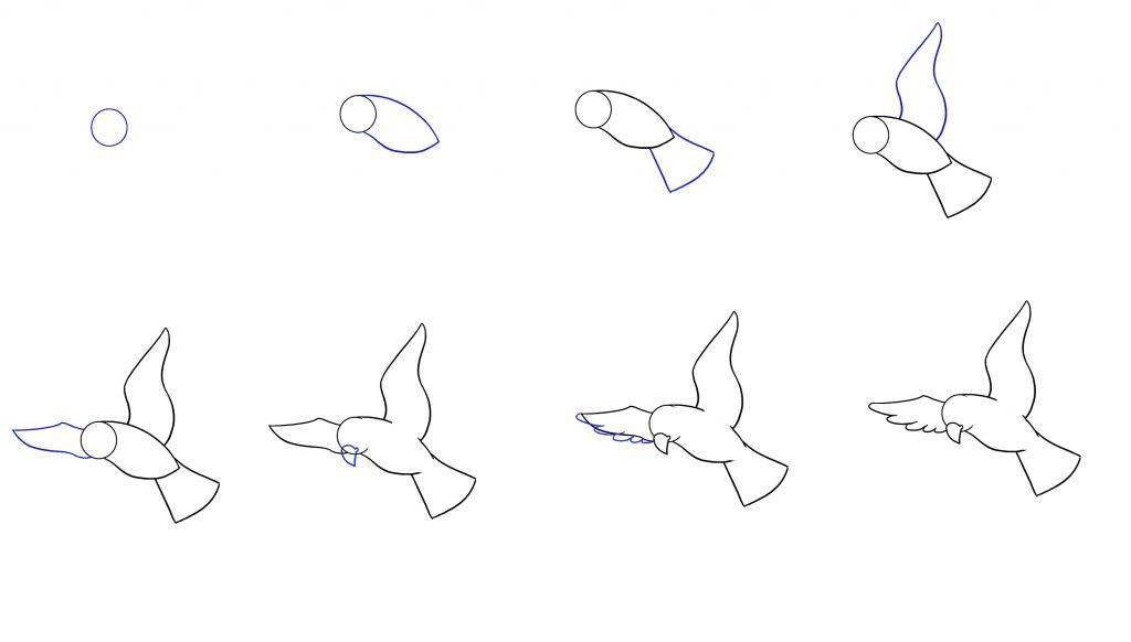 ![Последовательность рисования птицы]()