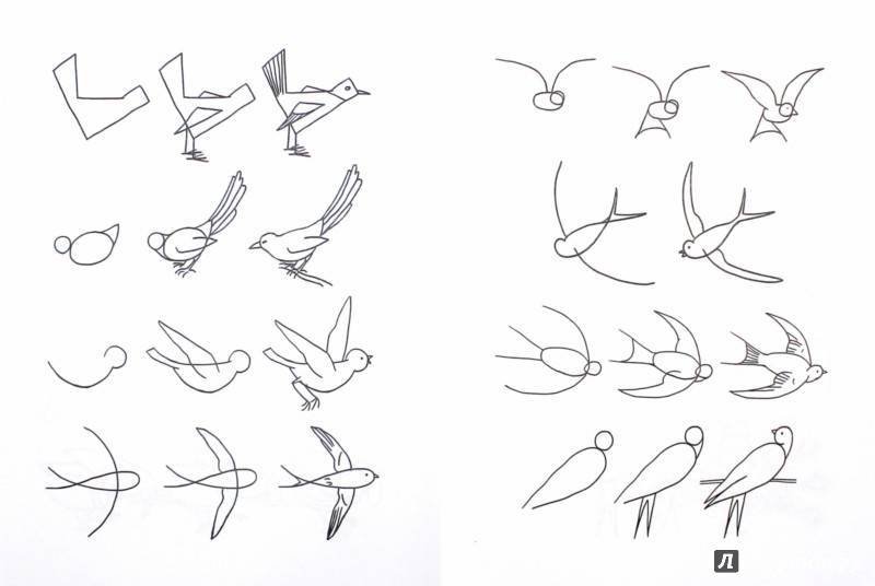Поэтапное рисование птиц