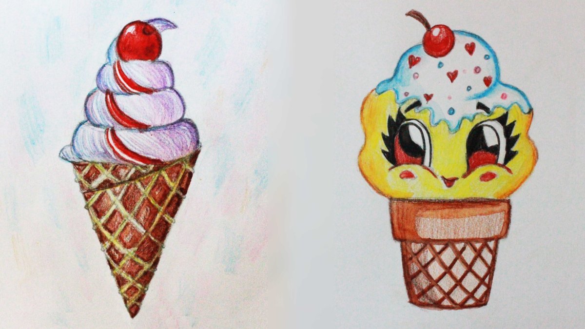 ![Мороженое цветными карандашами]()