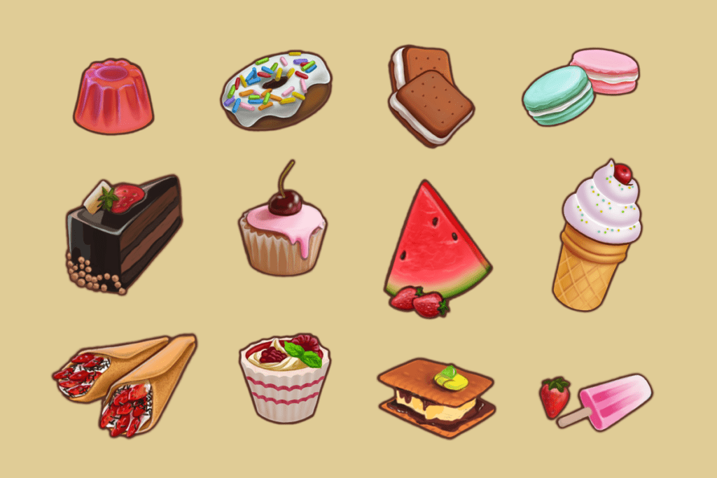 ![Мультяшные сладости]()