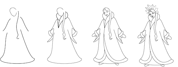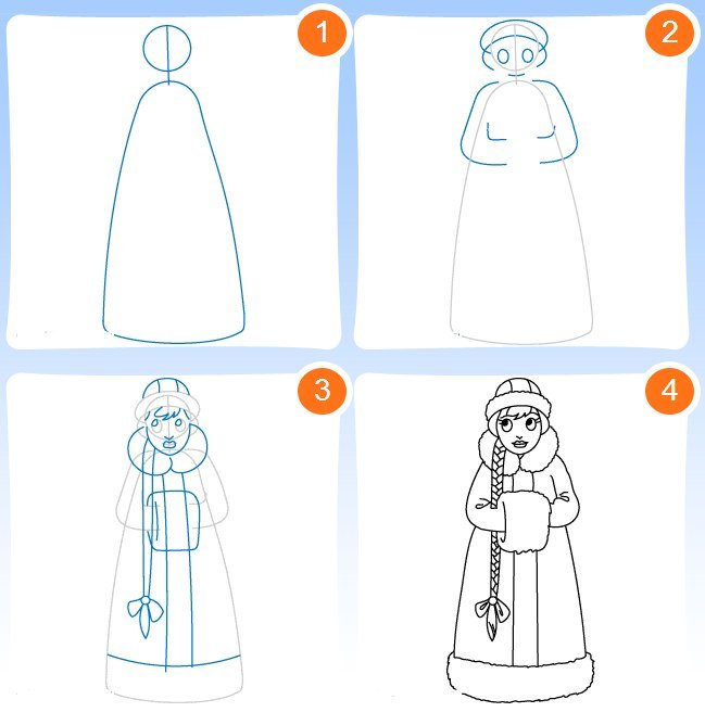 Поэтапный рисунок Снегурочки