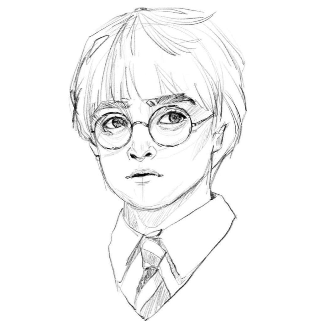 ![Портрет Гарри Поттера карандашом]()