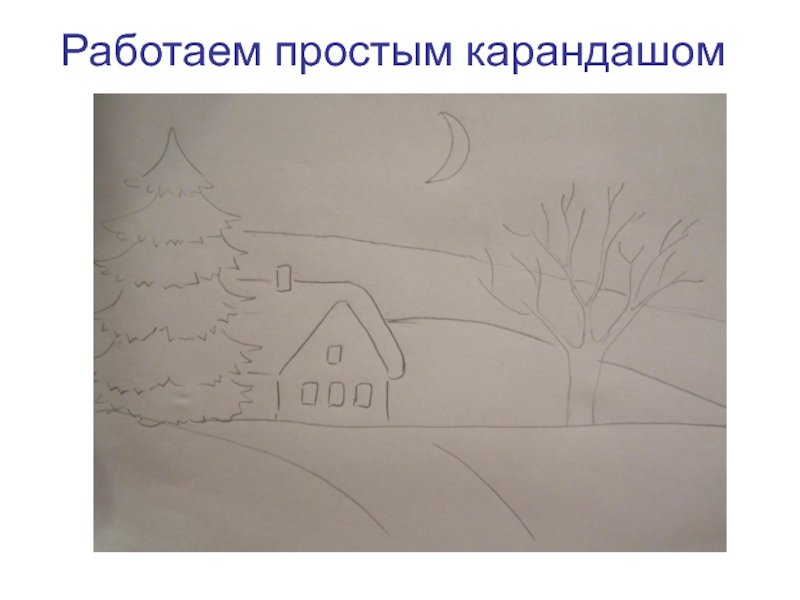 Зимний пейзаж карандашом для детей