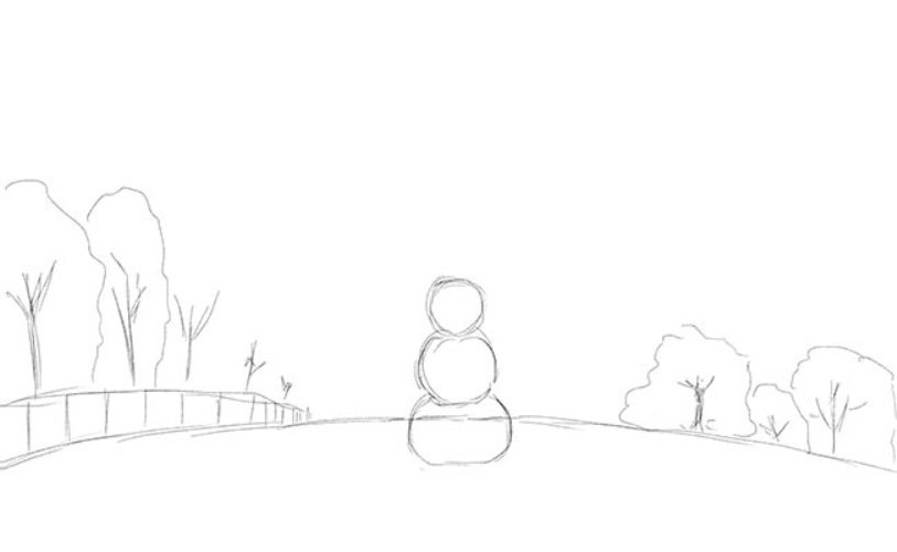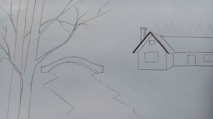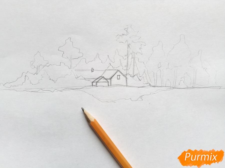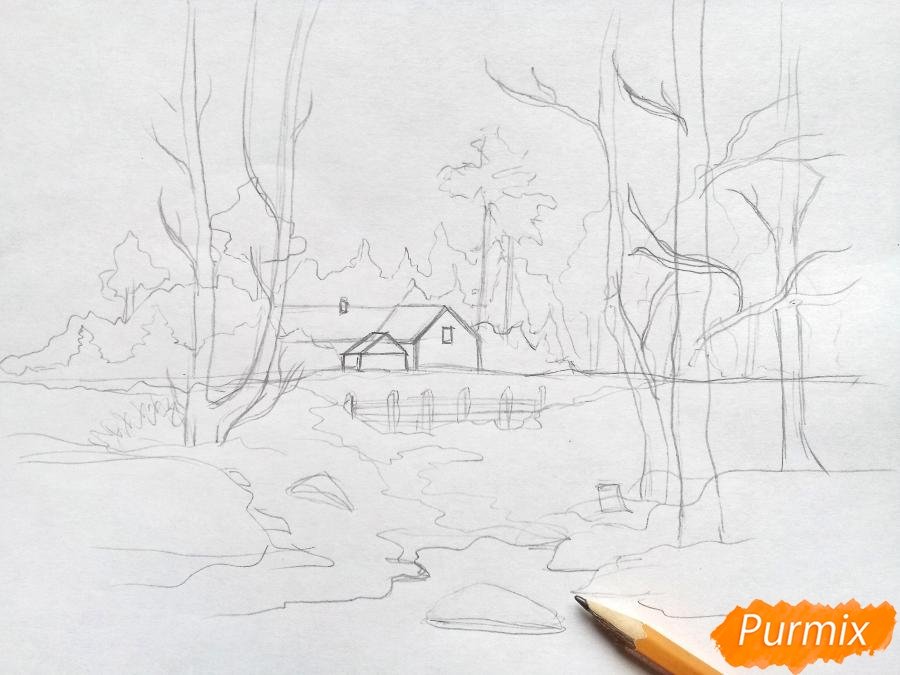 Зимний пейзаж поэтапное рисование карандашом