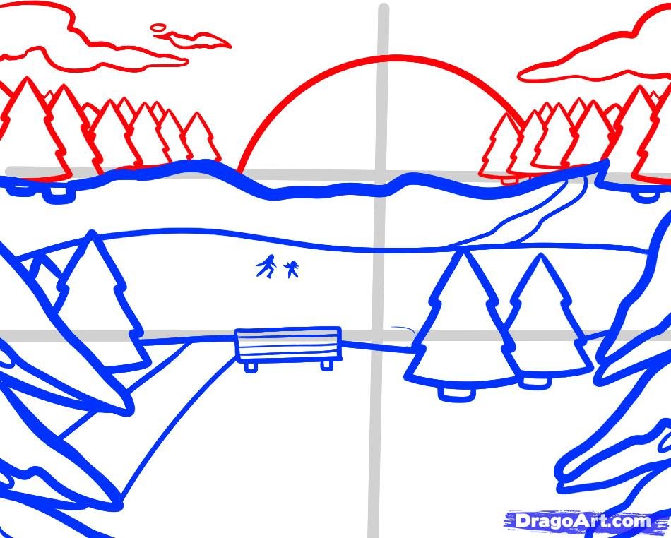 Пейзаж карандашом для срисовки