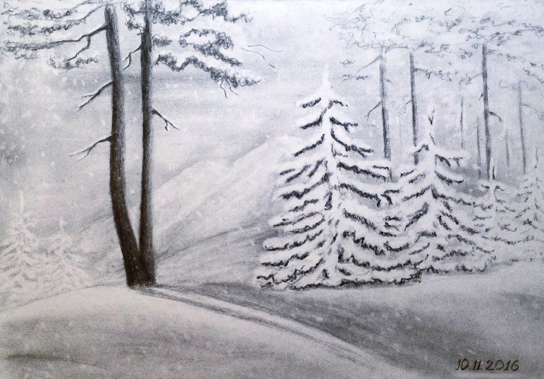 Рисунки зимы карандашом для начинающих