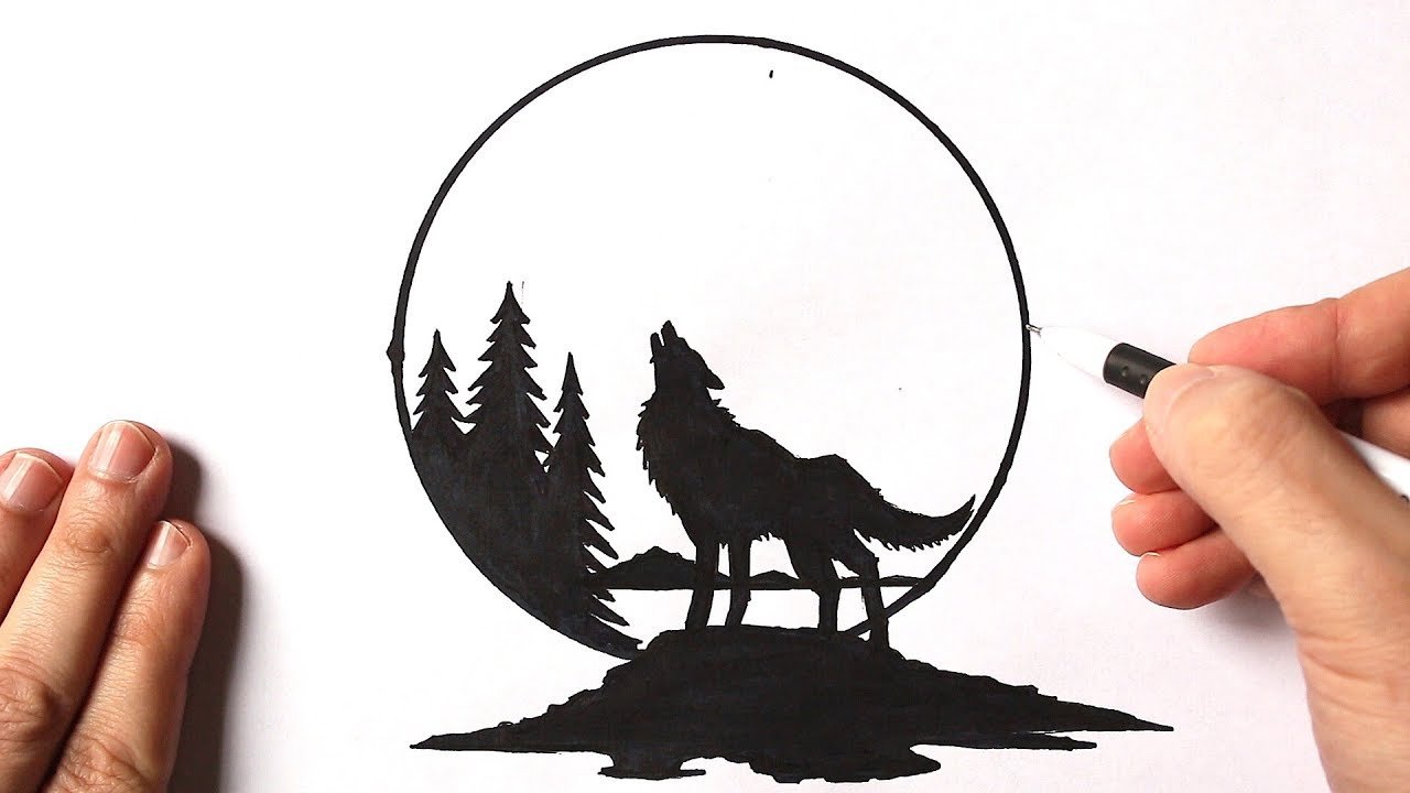 Волк воет на луну рисунок карандашом