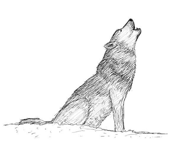 ![Волк воет рисунок]()
