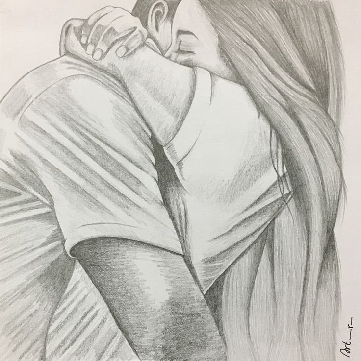 ![Объятия рисунок карандашом]()