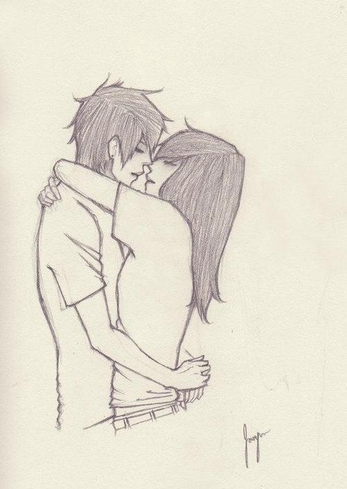 Рисунок пары влюбленных карандашом