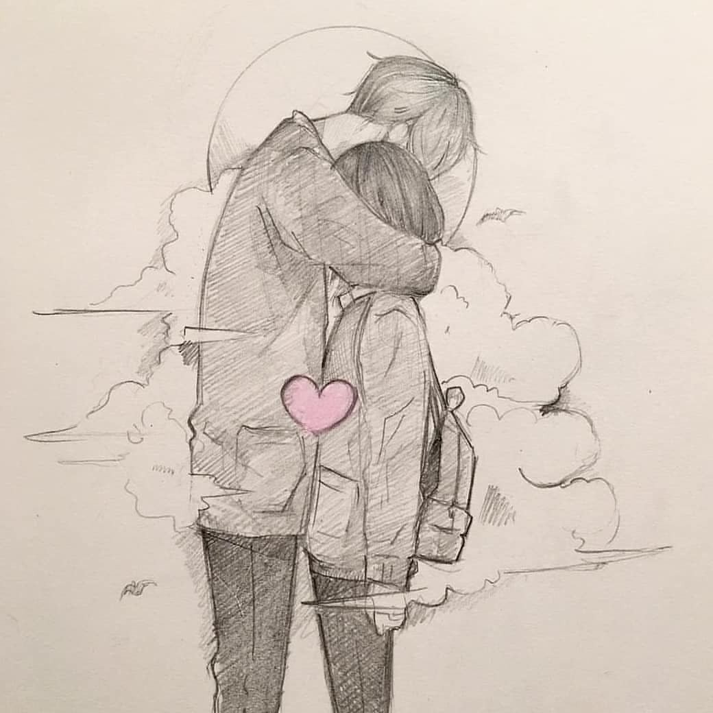 ![Обнимашки рисунок карандашом]()