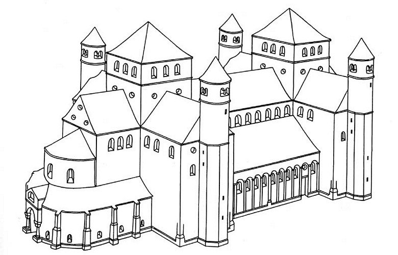 ![Романская Церковь Святого Михаила в Германии рисунок]()