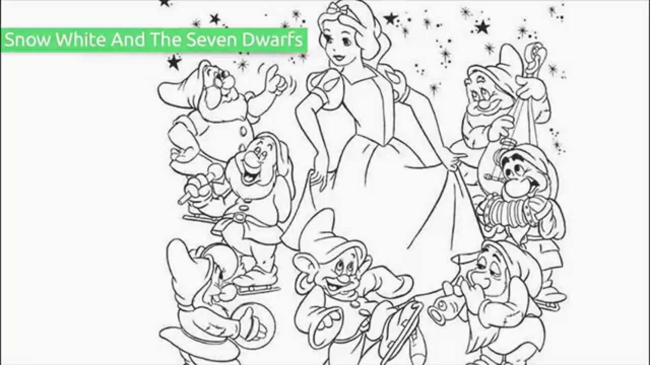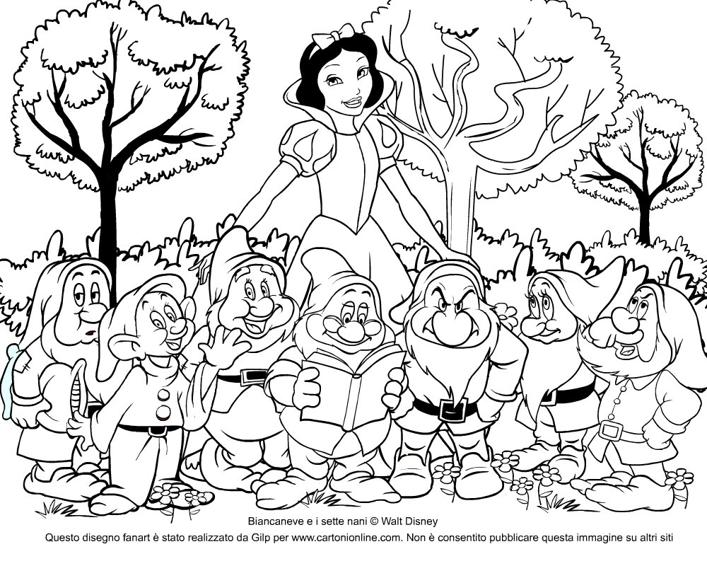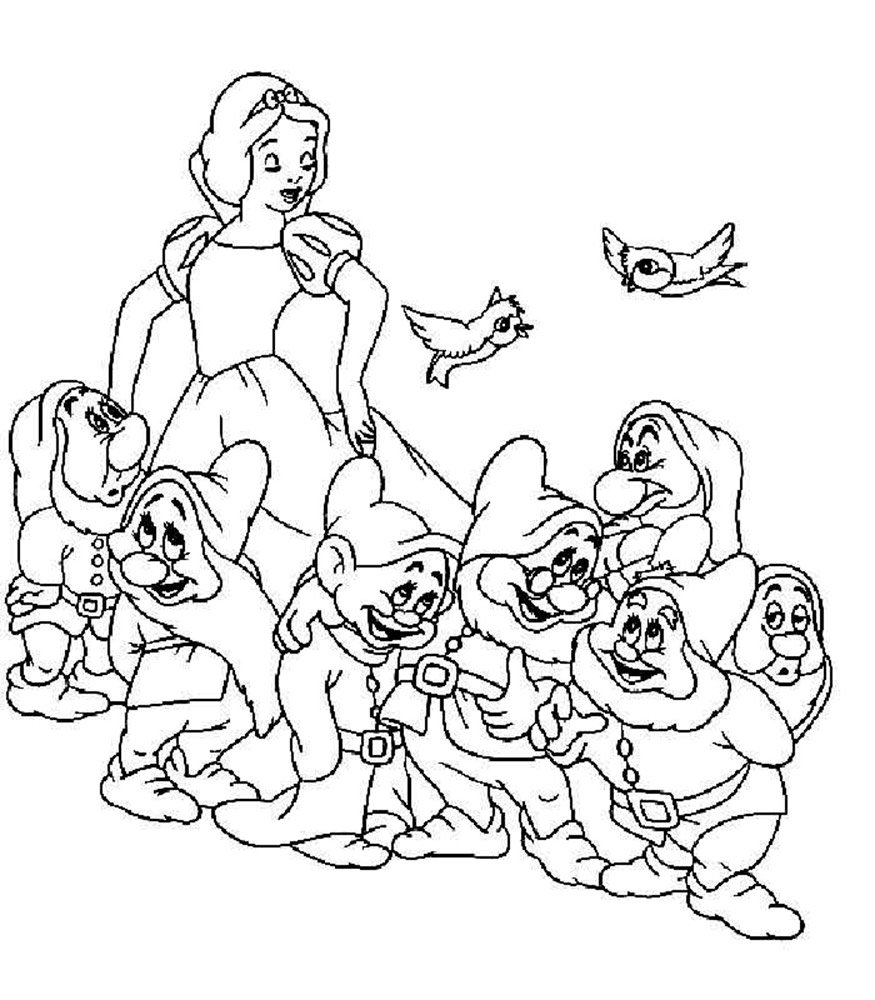 Белоснежка и семь гномов раскраска для детей