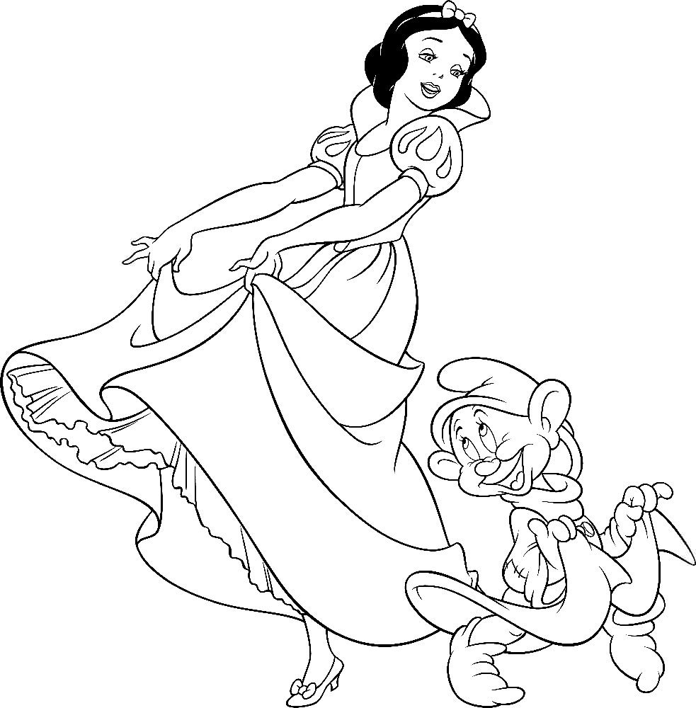 ![Раскраска принцессы Disney Белоснежка и семь гномов]()