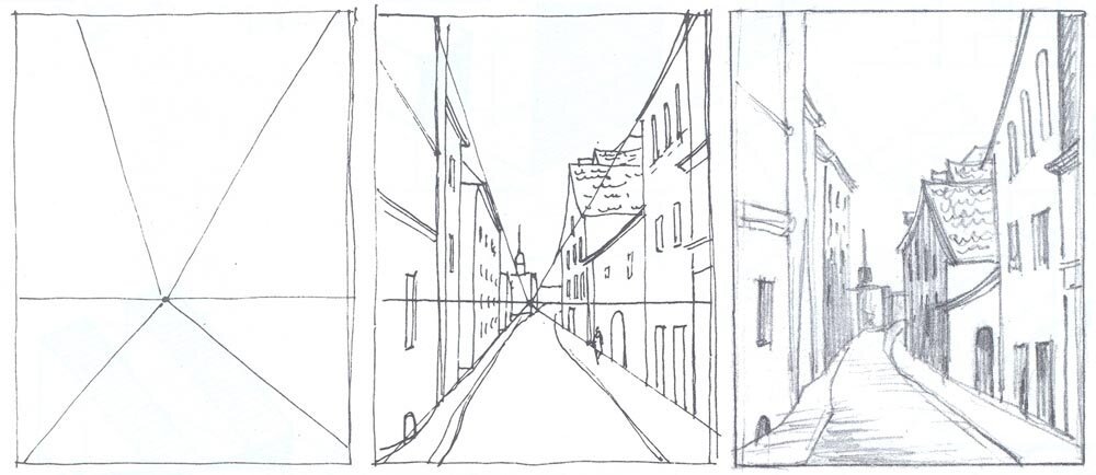 Городской пейзаж рисунок карандашом 6 класс легкий
