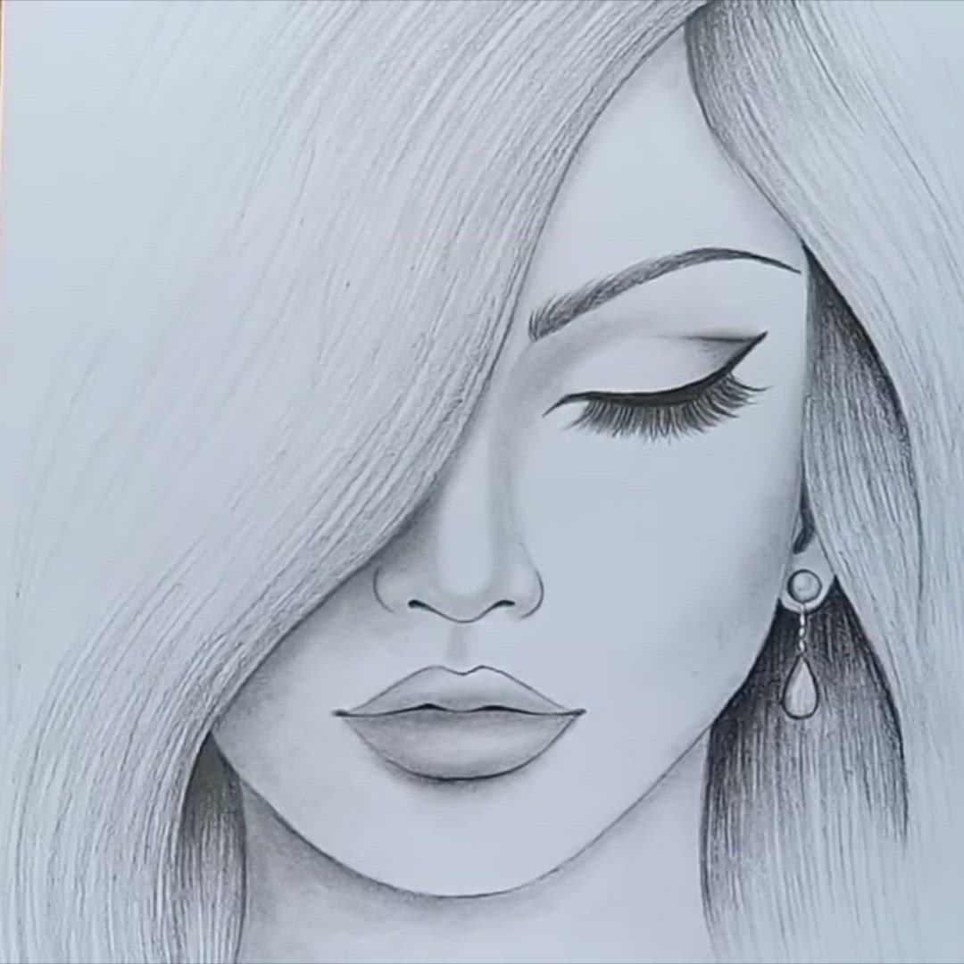 ![Рисунки лиц девушек карандашом для скетчбука]()