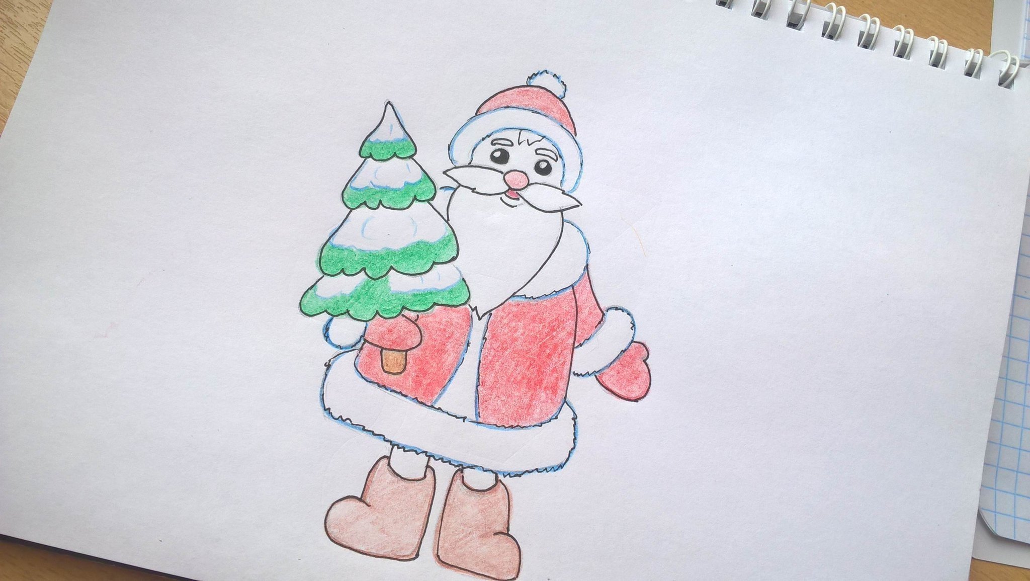 ![Поэтапное рисование Деда Мороза 1 класс]()