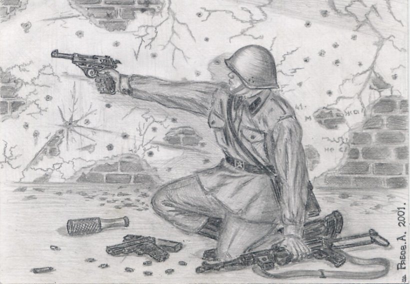 ![Рисунок на военную тему карандашом]()