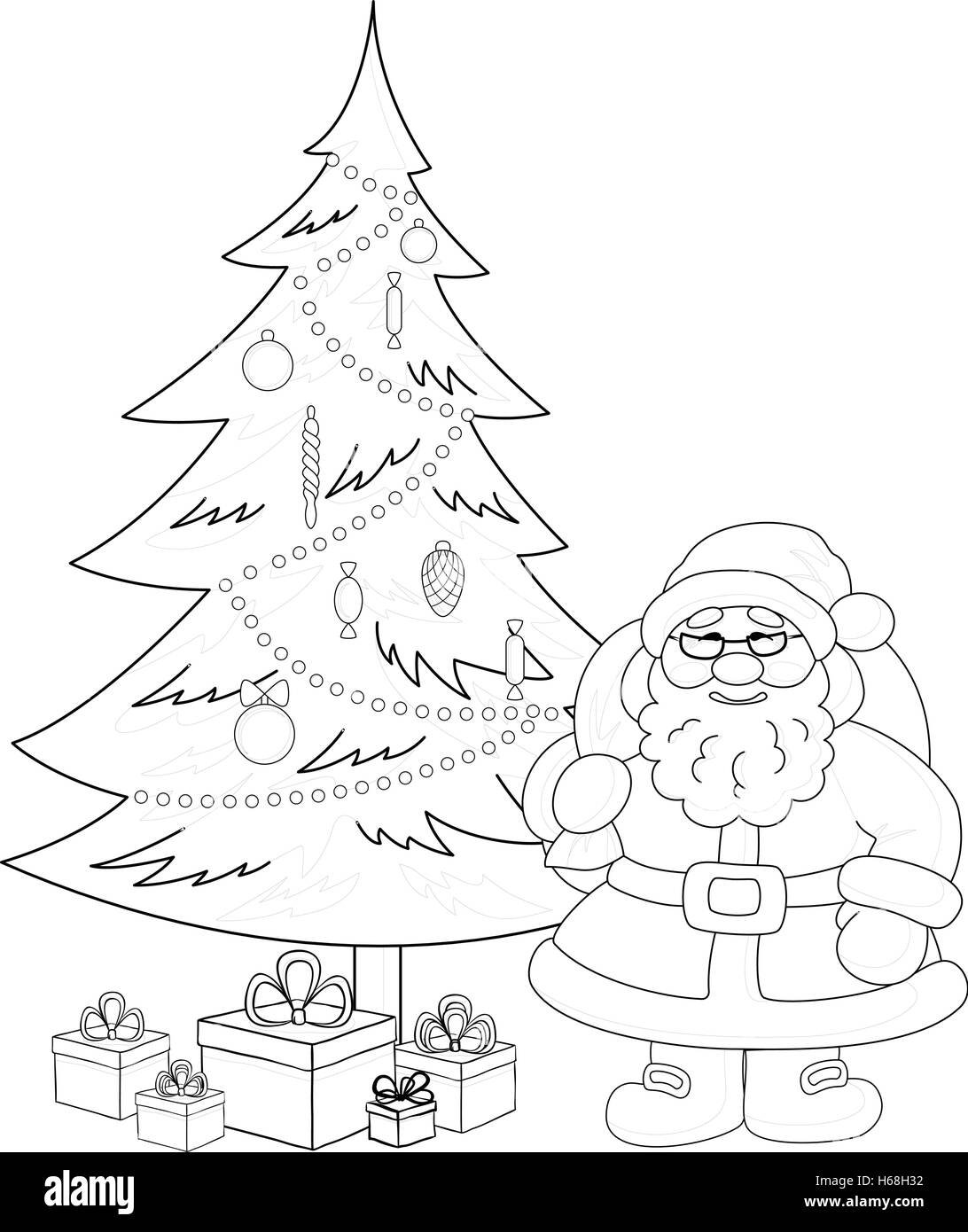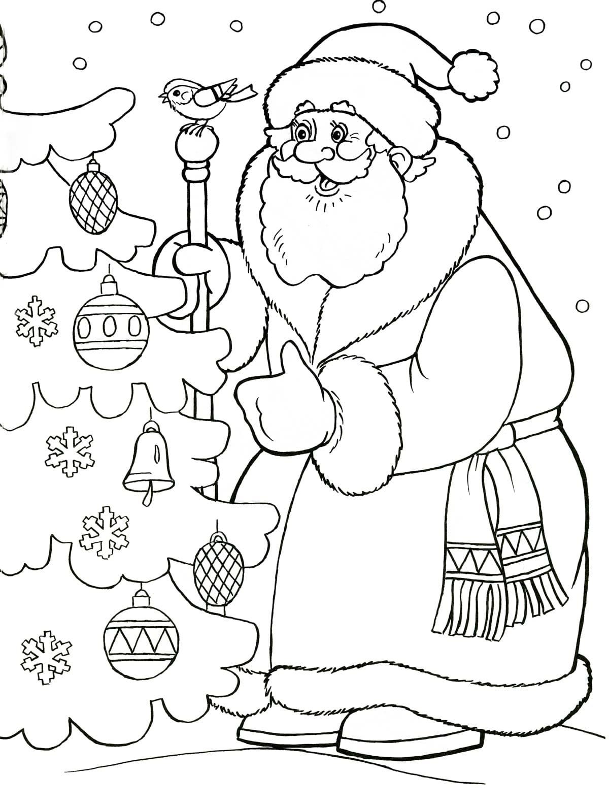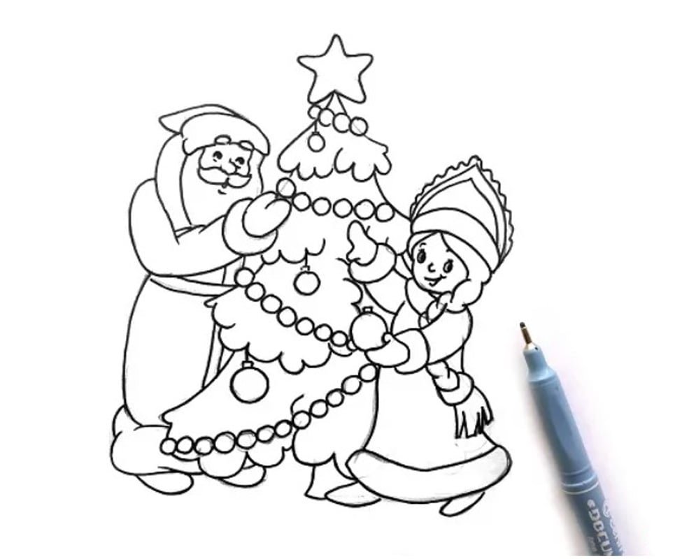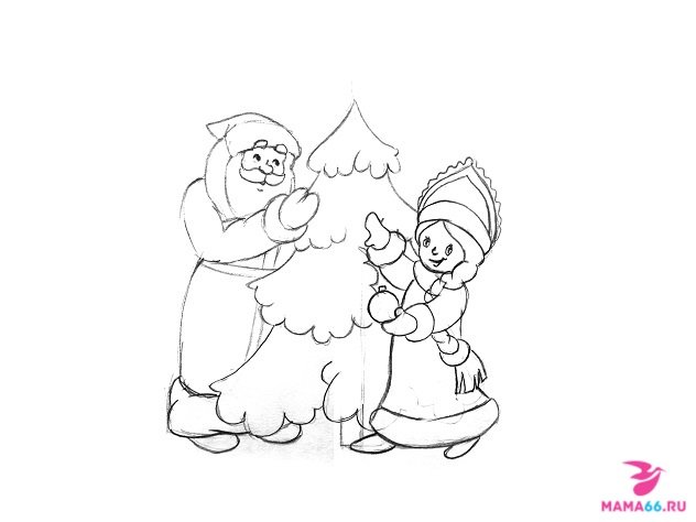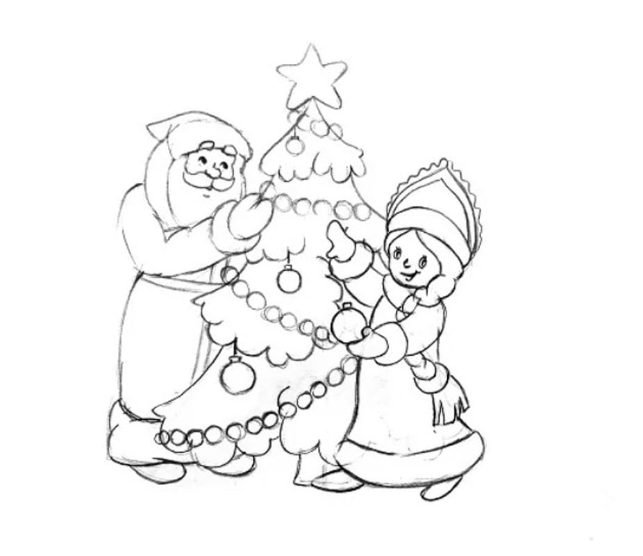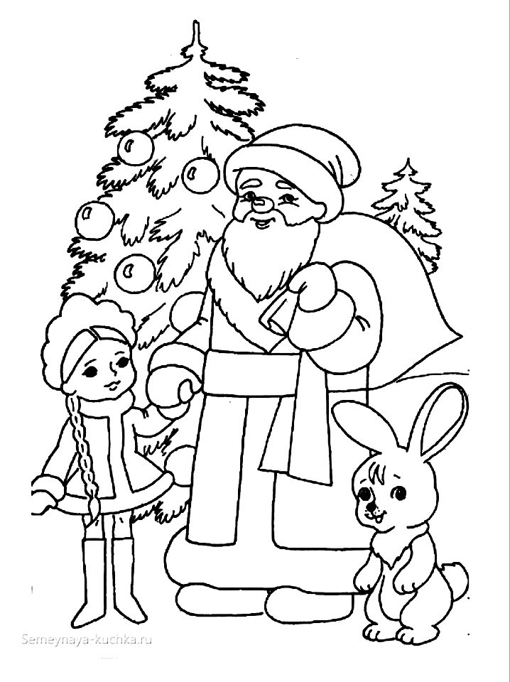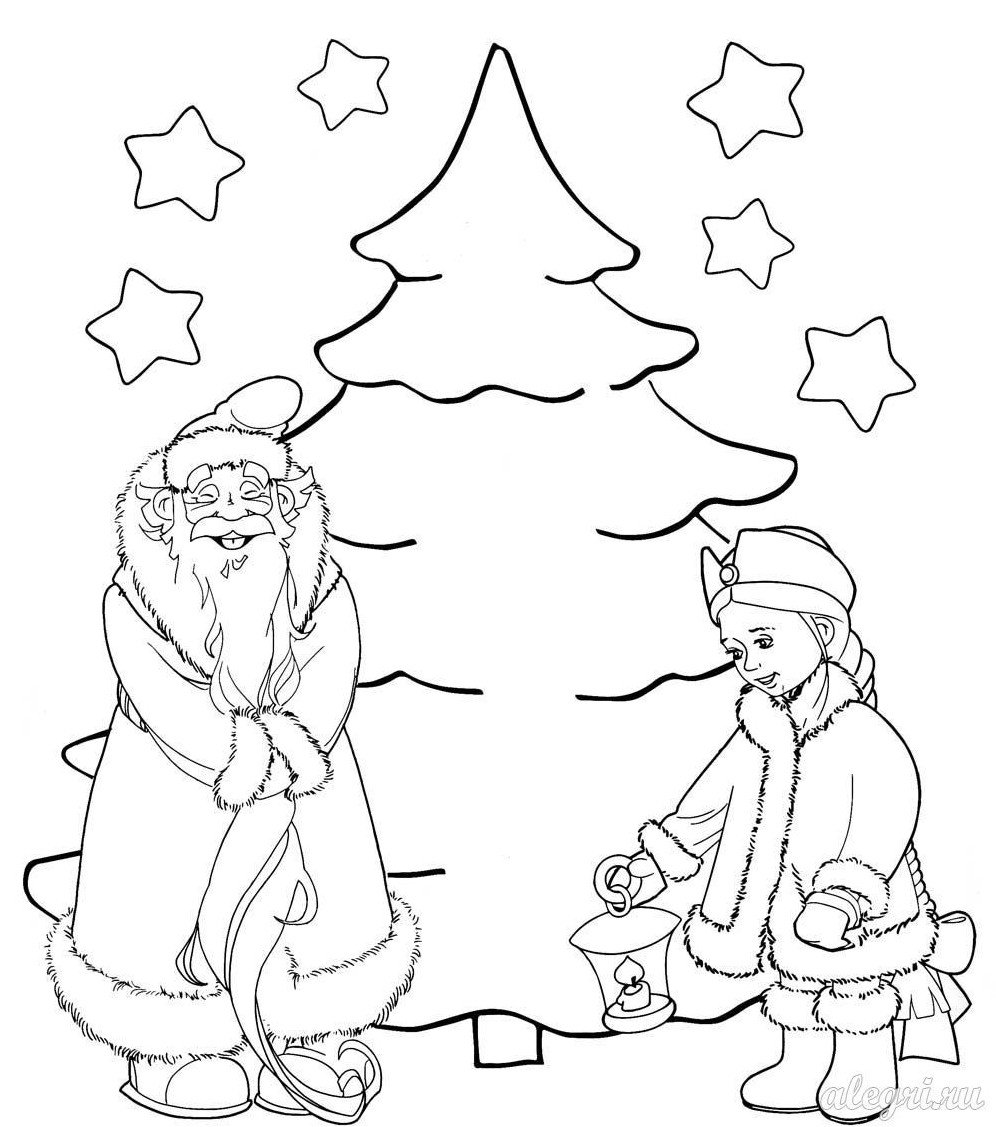 ![Раскраска дед Мороз и Снегурочка и елка]()