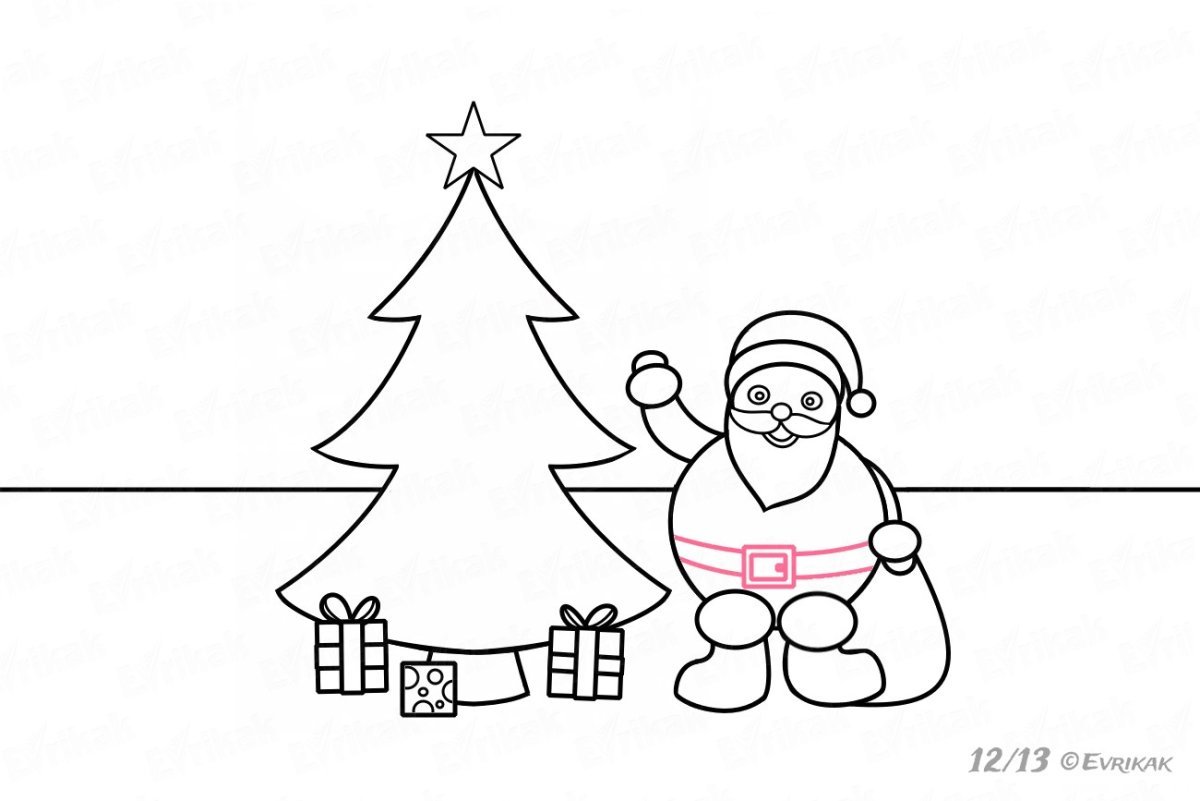 ![Рисунок дед Мороз и елка легкий рисунок]()