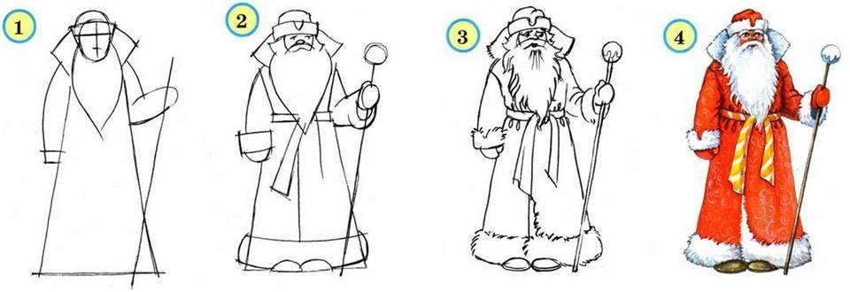 ![Поэтапное рисование Деда Мороза 1 класс]()