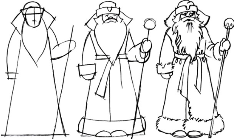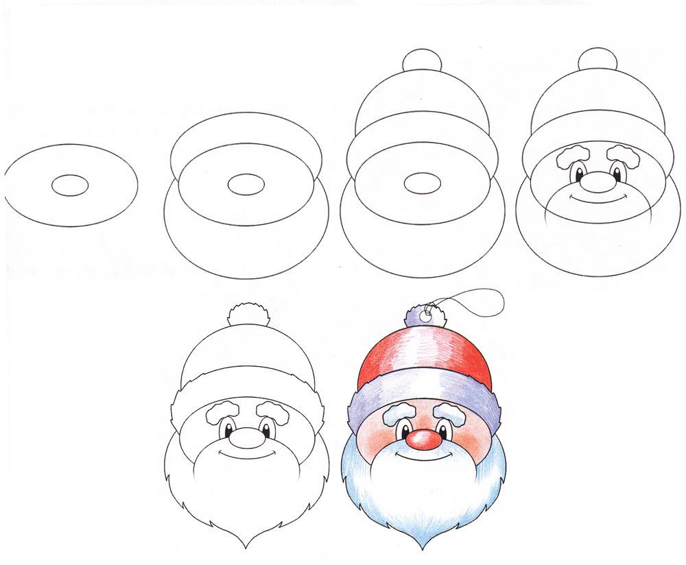 ![Нарисовать Деда Мороза пошагово ребенку]()