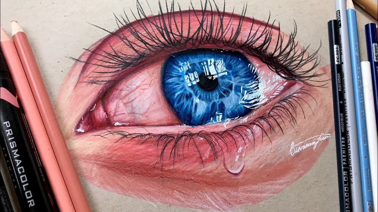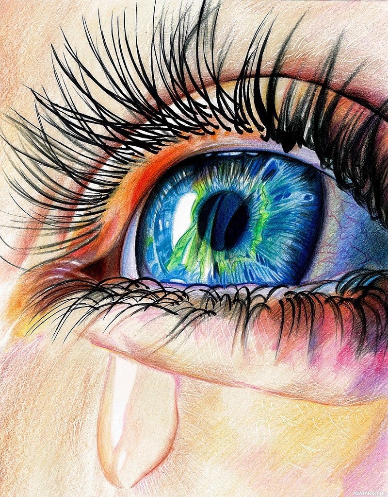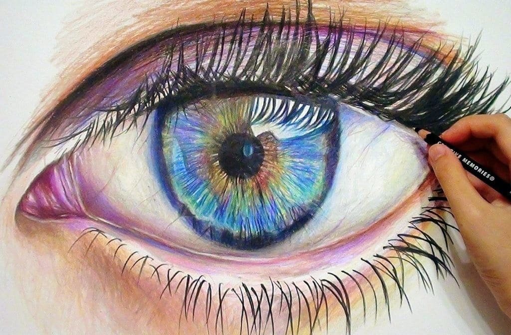Рисование глаза цветными карандашами