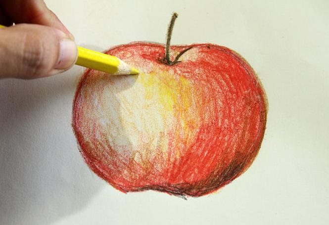 ![Яблоко акварельными карандашами]()