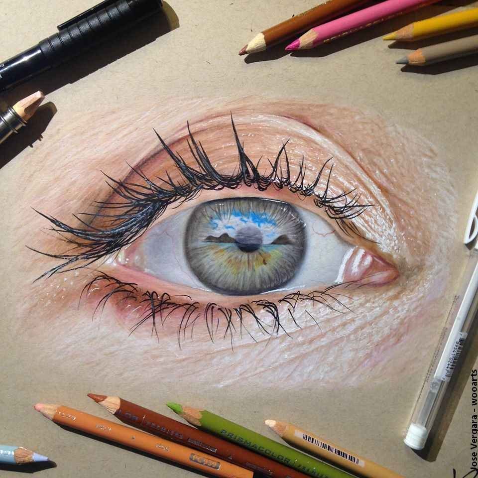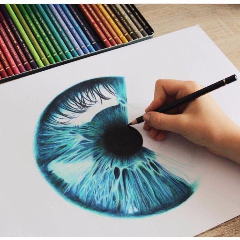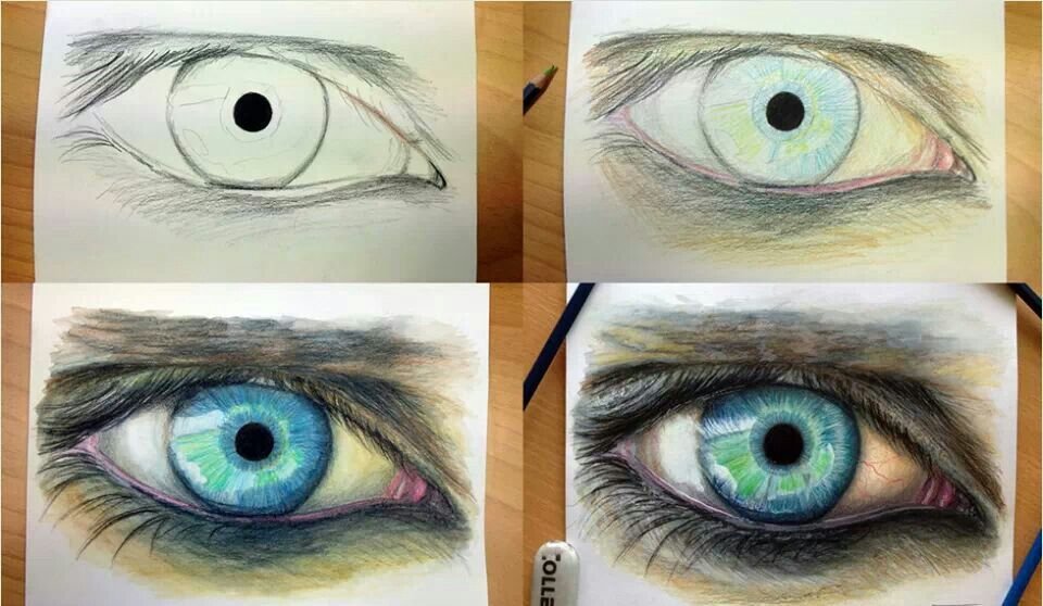 ![Рисование глаза цветными карандашами]()