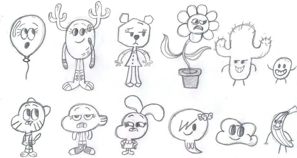 ![Удивительный мир Гамбола для срисовки]()