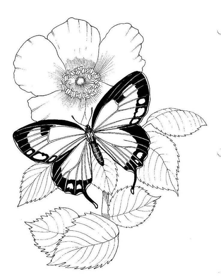 ![Раскраска бабочки на цветах]()