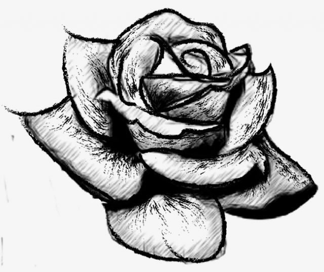 ![Эскиз розы карандашом]()