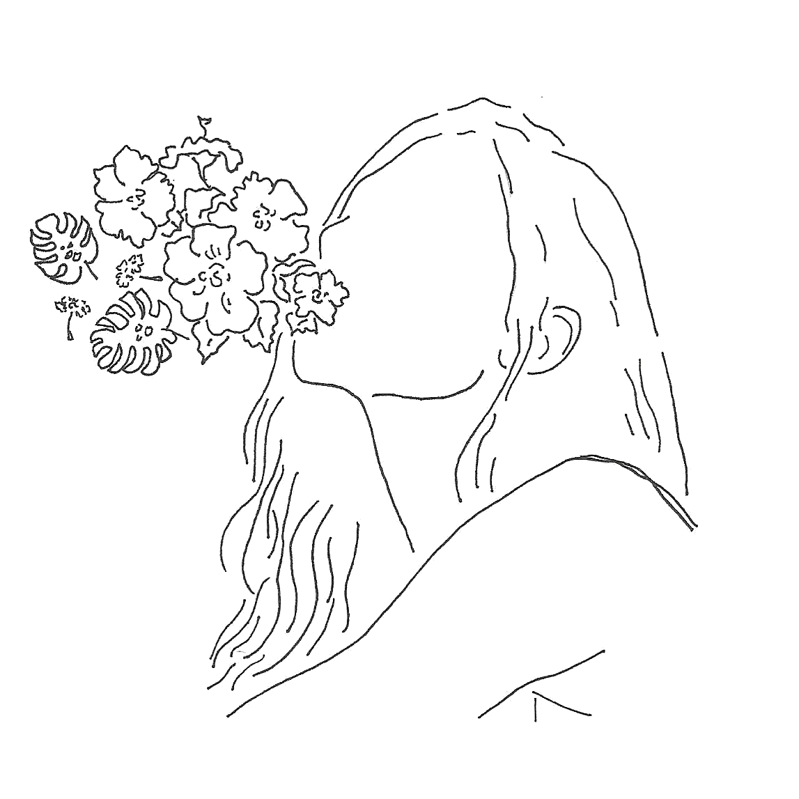 ![Цветы черной ручкой]()